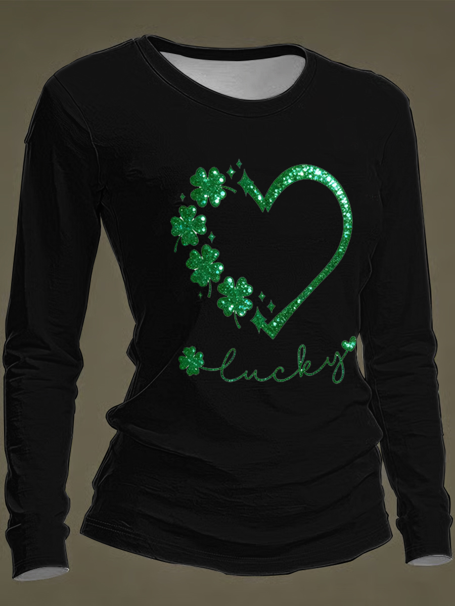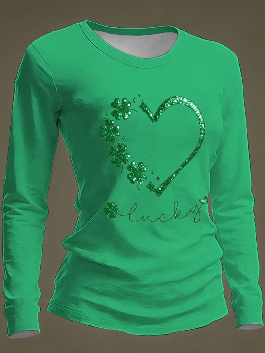 Women's St. Patrick's Day Round neck long sleeve T-shirt
