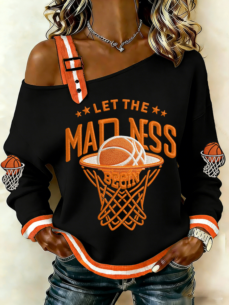Women's The Madness Print March Madness Basketball Lovers Casual Off-Shoulder Sweatshirt