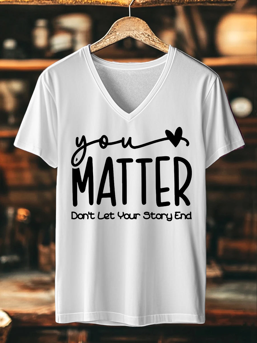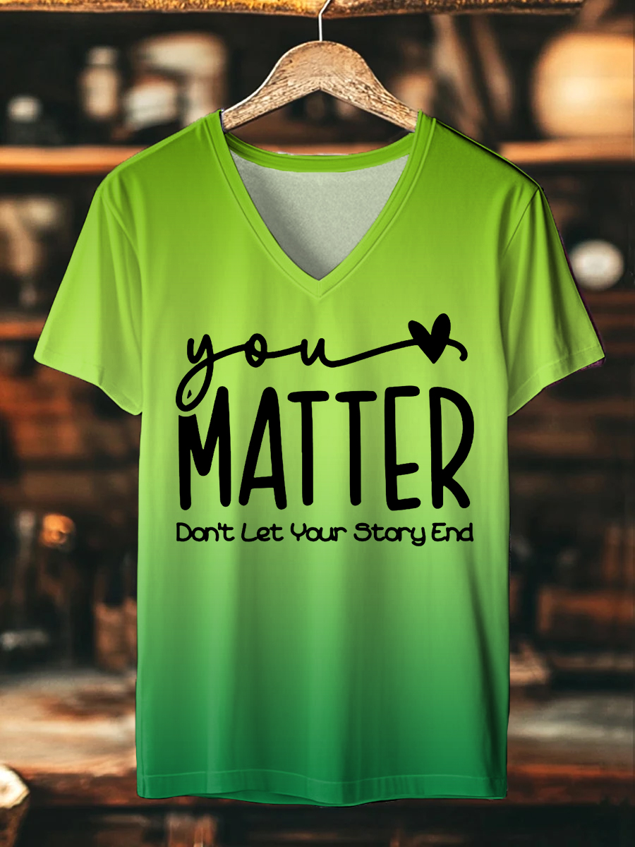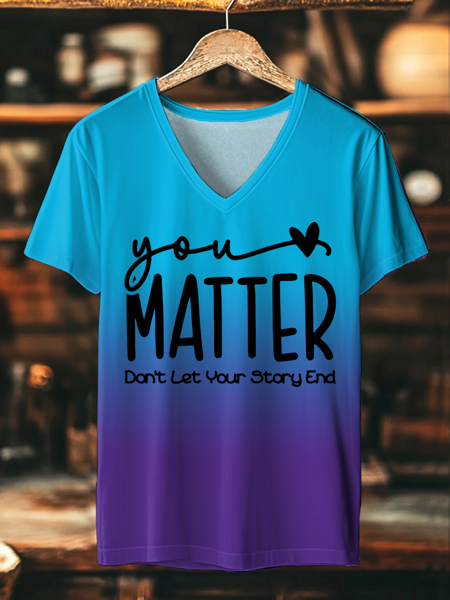 Women's You Matter, Don't Let Your Story End Gradient Print Mental Health V-Neck Tee
